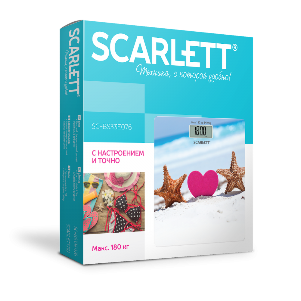 Напольные весы SC-BS33E076 - это простой и удобный способ контролировать свой вес! Благодаря высокочувствительным датчикам погрешность составит не более одной цены деления: 100 г. Максимальный вес: 180 кг.