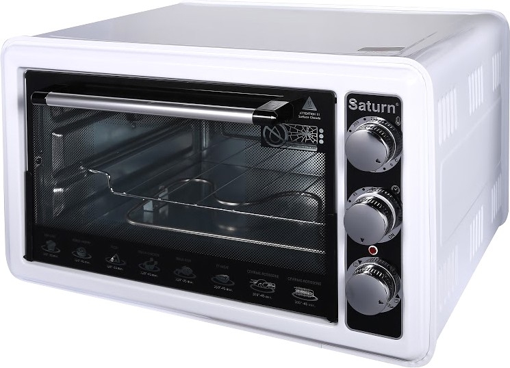 Эта электрическая печь, обладая небольшими габаритами, способна заменить или дополнить стандартную духовую печь. При этом она не только с легкостью запечёт рыбу и приготовит на гриле курицу или свиные стейки, но также испечет вкусные пироги и другую выпечку! Эта электрическая печь имеет вертел в своем арсенале, так что приготовить одинаково прожаренную со всех сторон ароматную курицу не составит труда! Вы сможете выбирать нужную температуру, ставить таймер на время, регулировать высоту протвиня. Все это обеспечит комфортную работу с печкой. Электрические печи Saturn - неизменно превосходный результат!