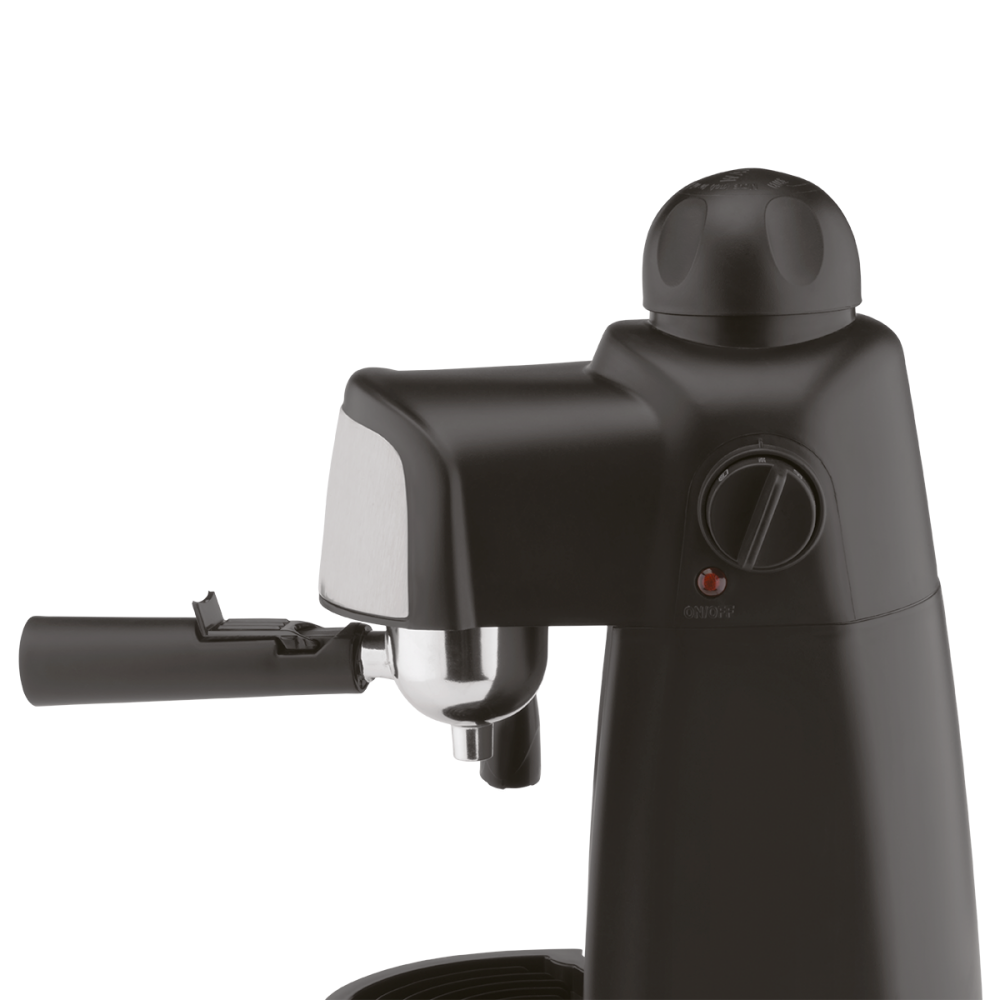 Тип - эспрессо, для приготовления: эспрессо, капучино, латте, мощность - 800 Вт, объём кофейника - 200 мл, давление помпы - 4 Бар, для 2-4 чашек, капучинатор, съемный многоразовый фильтр, мерная ложка, система предотвращения протекания кофе, съёмный поддон для капел, световой индикатор работы