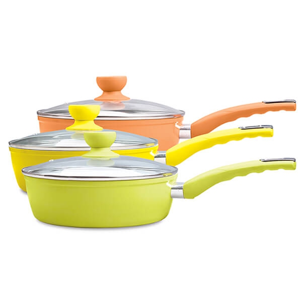 Размер: Ø 26 см - объем 3,5 л, материал: алюминий, внутреннее покрытие: керамическое индукции дно, цвета: зеленый, оранжевый, желтый