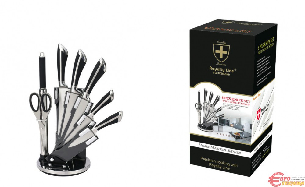 Набор ножей Swiss Boch SB-KSS700 изготовлен из высококачественной стали, ножи размещаются на подставке, которая вращается 360 градусов.