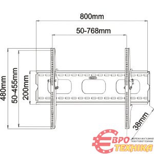 Совместим с ТВ 30" - 50", максимальная нагрузка 45 кг, угол наклона -15º / 0º