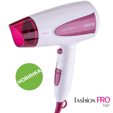 Мощность 1600 Вт, 2 скорости, 1 температурные режимы, концентратор, складная ручка, цвет белый с малиновым, долговечный DC мотор