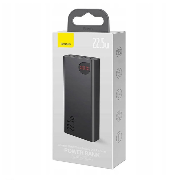 Тепер ви можете зручно наснажувати свої пристрої, де б ви не знаходилися. Powerbank Baseus Adaman ємністю 20 000 мА*год підтримує різні протоколи швидкого наснаження та працює з потужністю до 22.5 Вт. Він оснащений цифровим дисплеєм і досить легкий та компактний, щоби супроводжувати вас практично скрізь, навіть у літаку.