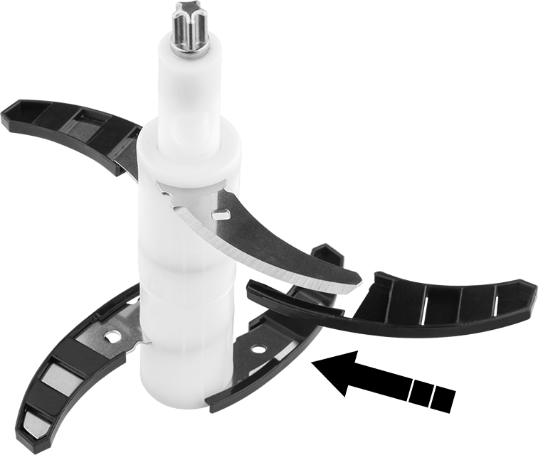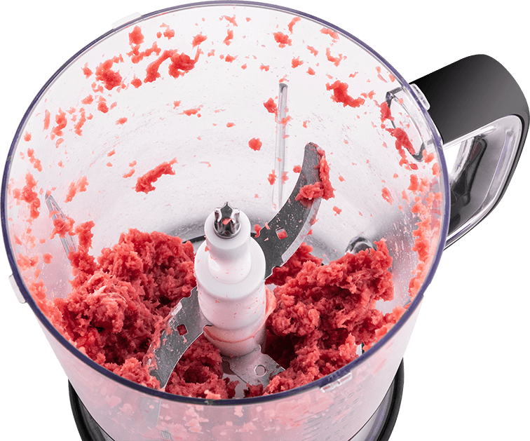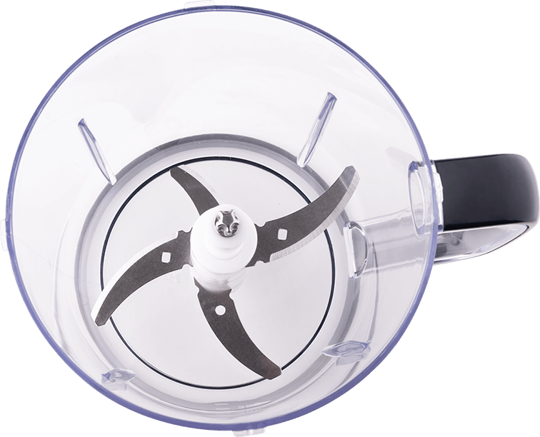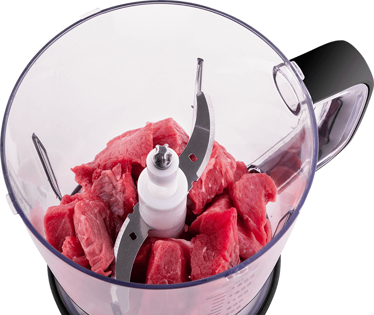 Конструкция лезвий S-образной формы позволяет эффективно измельчать сырые продукты