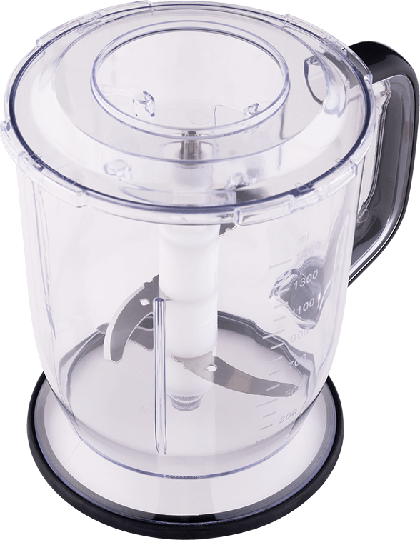 Большая устойчивая пластиковая чаша объемом 1,5 л подходит для измельчения большого количества ингредиентов