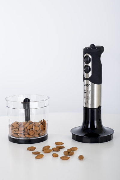 Погружаемая конструкция блендера ERGO EHB 5000 делает его универсальным кухонным прибором, который имеет практически неограниченный круг применения. Металлическая насадка позволяет погружать блендер даже в кипящую среду для приготовления, например, крем-супов. Венчик для взбивания поможет приготовить нежный омлет и очень мягкий бисквит. Чаша с крышкой и специальным ножом поможет быстро измельчить практически любые мягкие и даже твердые продукты.