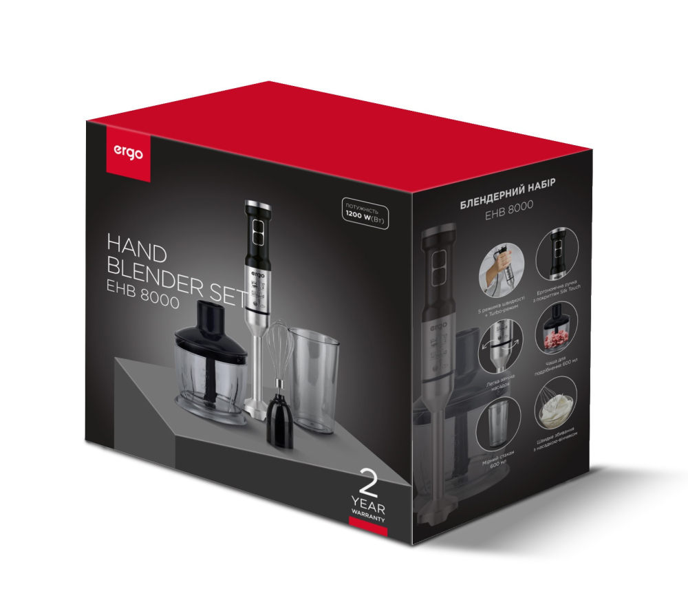 ERGO EHB 8000 – це занурювальний блендер, який допоможе швидко та зручно подрібнювати, мішати чи змелювати різноманітні м’які продукти, готуючи смачну і корисну їжу.