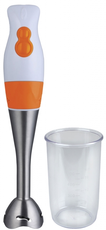 Мощность 350 Вт, 2 скорости, материал ножки блендера - металл, цвет: белый/оранжевый