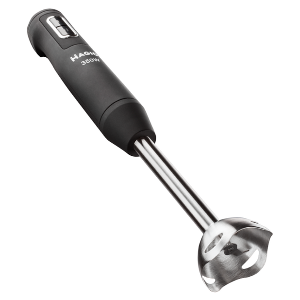 Мощный двигатель обеспечивает бесшумную эффективную работу на протяжении длительного времени. Погружная часть изготовлена из неиржавкои стали - залог износостойкости и долговечности. Блендер может работать на 2 скоростях. Переключатель размещается на рукоятке прибора, очень удобно - вы можете выбирать нужную скорость, управляя блендером одной рукой.