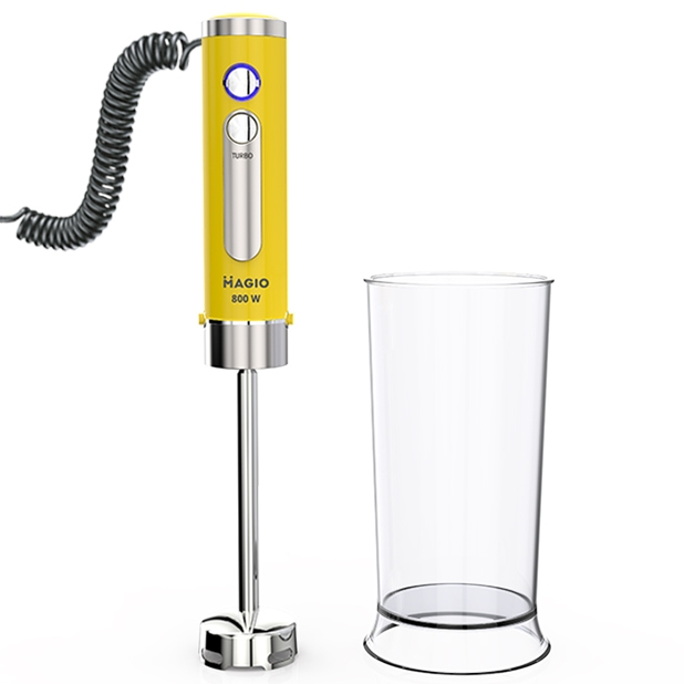 Мощность блендера составляет 800 Вт, что обеспечивает бесшумную эффективную работу в течение длительного времени, еще одним достоинством блендера является спиральный провод который не будет мешать во время приготовления.