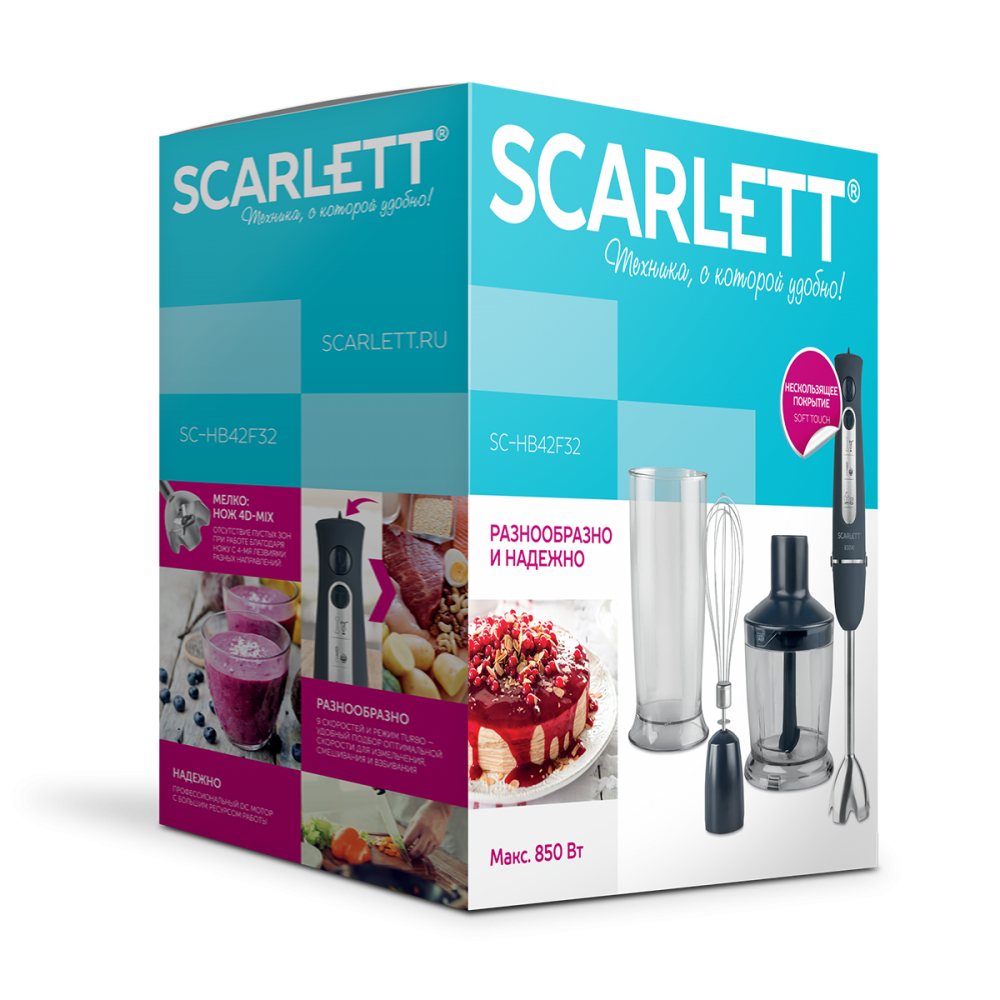 Блендер Scarlett SC-HB42F32 в стильном корпусе цвета синего графита с покрытием SOFT TOUCH подарит вам возможность разнообразить свой рацион.