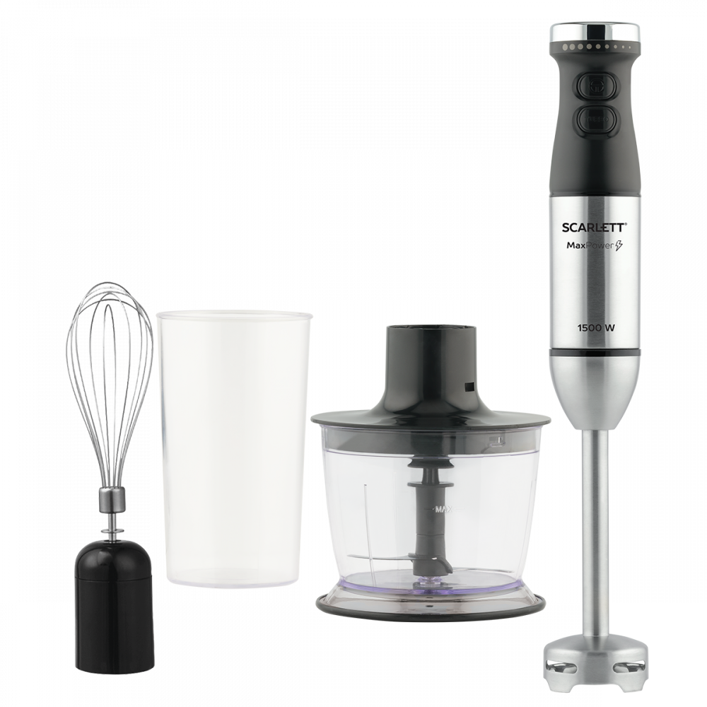 Блендер Scarlett SC-HB42F64 - универсальный кухонный помощник. Модель укомплектована насадками для смешивания, измельчения, взбивания. Он легко справляется со всеми этими задачами благодаря мотору высокой мощностью 1500 Вт.