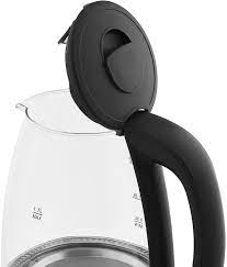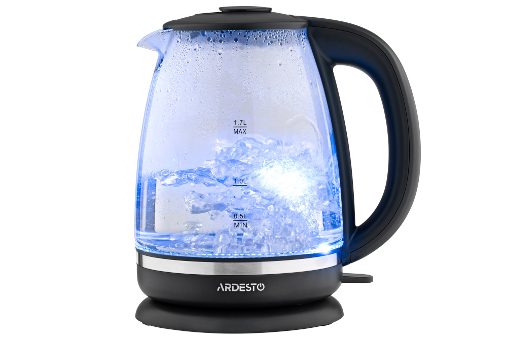 Прозорий скляний електрочайник з LED-підсвічуванням та Strix-контролером для захисту від перегріву. Об'єм чайника EKL-F100 становить 1,7 літра, а підставка забезпечує оберт на 360°. Матеріал підставки, основи та ручки – полікарбонат чорного кольору та шліфований метал. Основна частина чайника виконана із міцного загартованого скла з відмітками об'єму від 0.5 л до 1.7 л.
