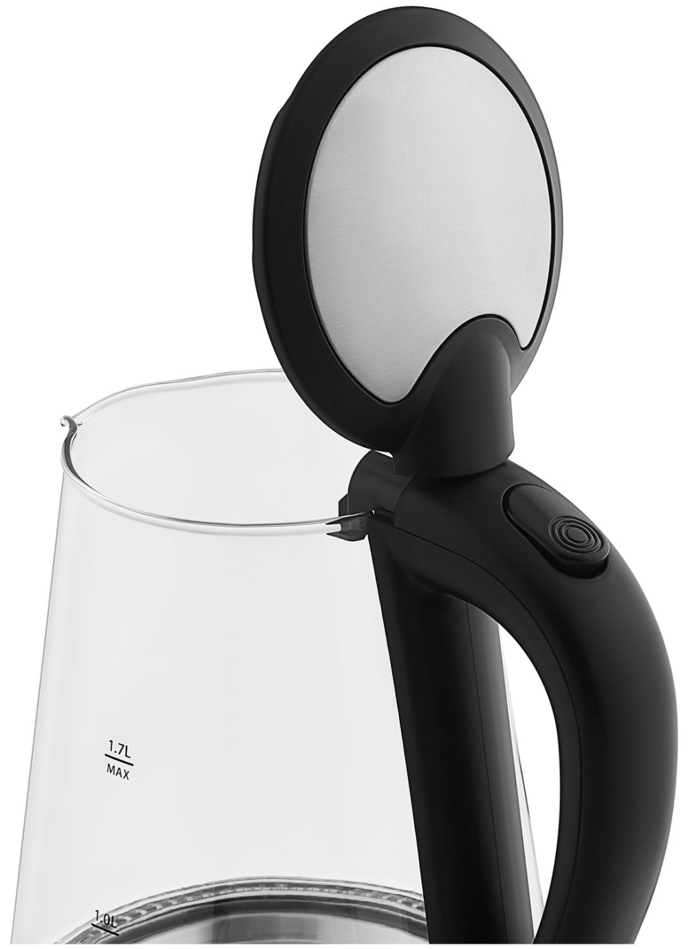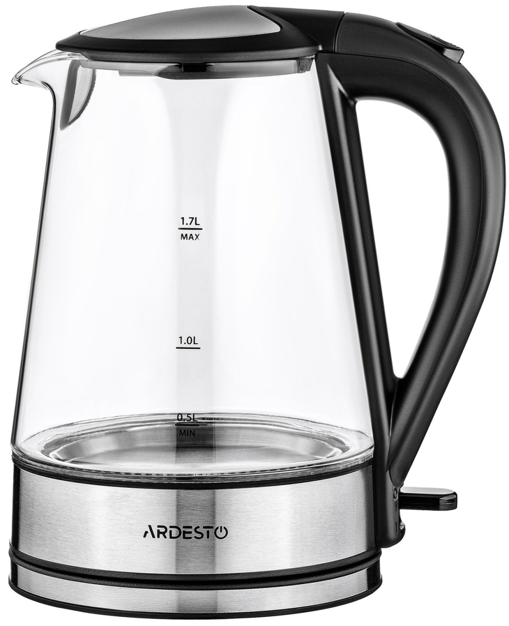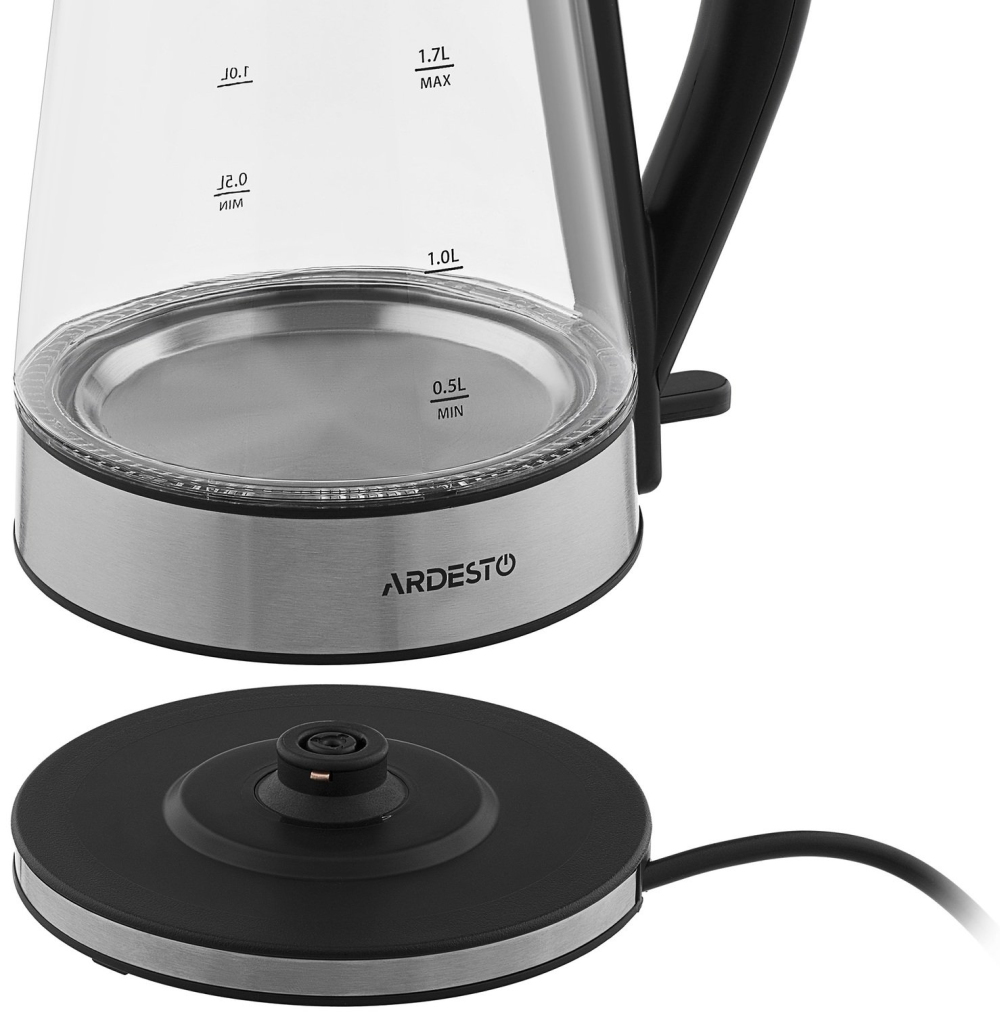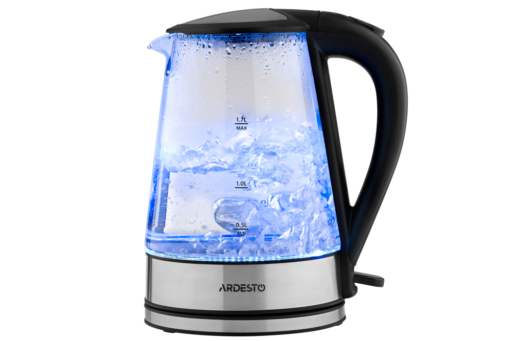 Прозорий скляний електрочайник з LED-підсвічуванням та Strix-контролером для захисту від перегріву. Об'єм чайника EKL-F110 становить 1,7 літра, а підставка забезпечує оберт на 360°. Матеріал підставки, основи та ручки – полікарбонат чорного кольору та шліфований метал. Основна частина чайника виконана із міцного загартованого скла з відмітками об'єму від 0.5 л до 1.7 л.