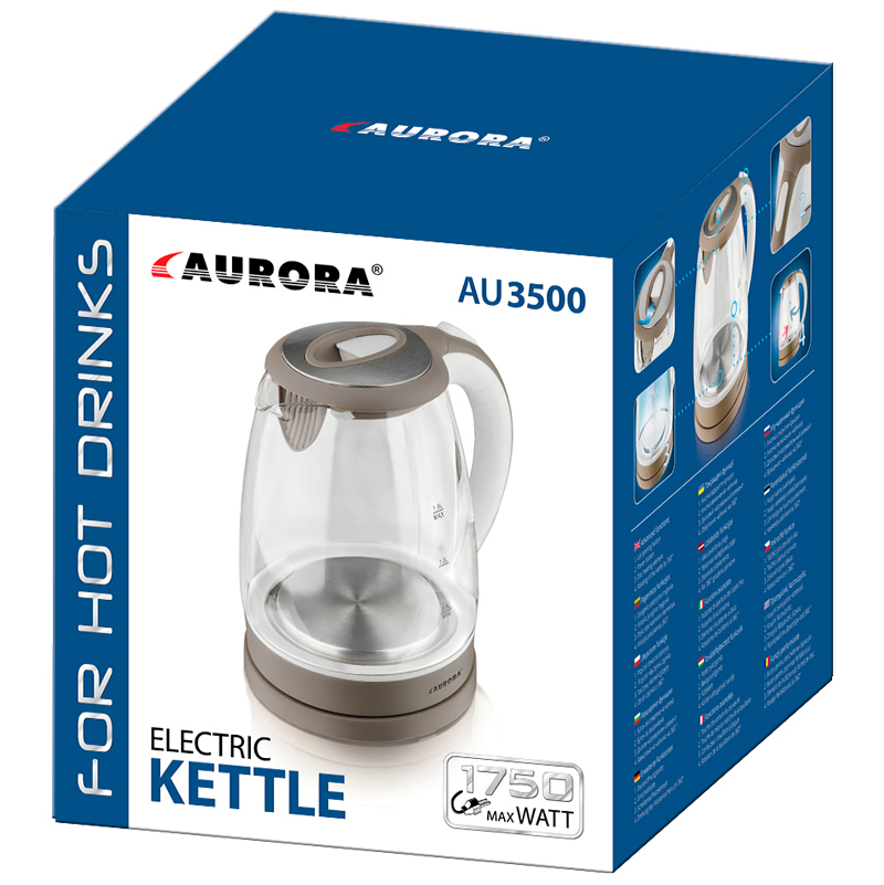 Чайник AU 3500 это настоящий помощник на Вашей кухне. Классические формы чайника изготовлены из самого экологичного материала - стекла, и дополнены элементами из коричневого пластика, а круглая база со вставками из нержавеющей стали завершает образ последнего. Световая индикация во время работы делает его стильным предметом интерьера. Открывания крышки с помощью кнопки и широкая горловина чайника позволяет легко заливать воду а также легко его мыть. Мощный нагревательный элемент в электрочайника AU 3500 позволит вскипятить воду за несколько минут, а наличие двойной системы безопасности предотвратит неприятности на кухне