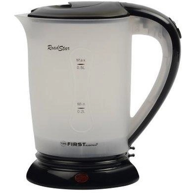 Корпус електрочайника First FA 5425-2 зроблений з термостійкого пластику. Моделі характерний стильний і сучасний дизайн. Ергономічна ручка дорожнього електрочайника зручно лежить в руці і не ковзає при маніпуляції. На ній розташована кнопка включення/вимикання приладу. На основі чайника розташований світловий індикатор роботи. Корисний об'єм електрочайника First FA 5425-2: 0,5 л. Його цілком достатньо для задоволення потреб одного, двох осіб в умовах поїздки. Споживана потужність дорожнього електрочайника, дозволяє закип'ятити воду до п'яти хвилин. За типом нагрівального елемента, модель відноситься до дискового (прихованого) типу. Перевагою дискового типу над спіральним, є висока площа контакту з водою і швидкість її нагрівання. Трубчастий електричний нагрівач (ТЕН) розташований в днищі корпуса.