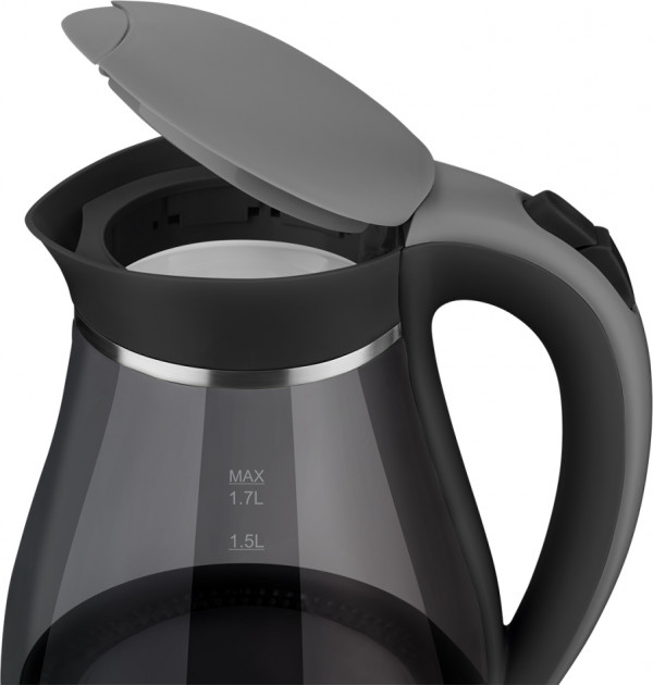 Мощность 2200 Вт, емкость 1.7 л, материал корпуса: черное стекло Crystal PRO, закрытый нагревательный элемент, подсветка, индикатор уровня воды