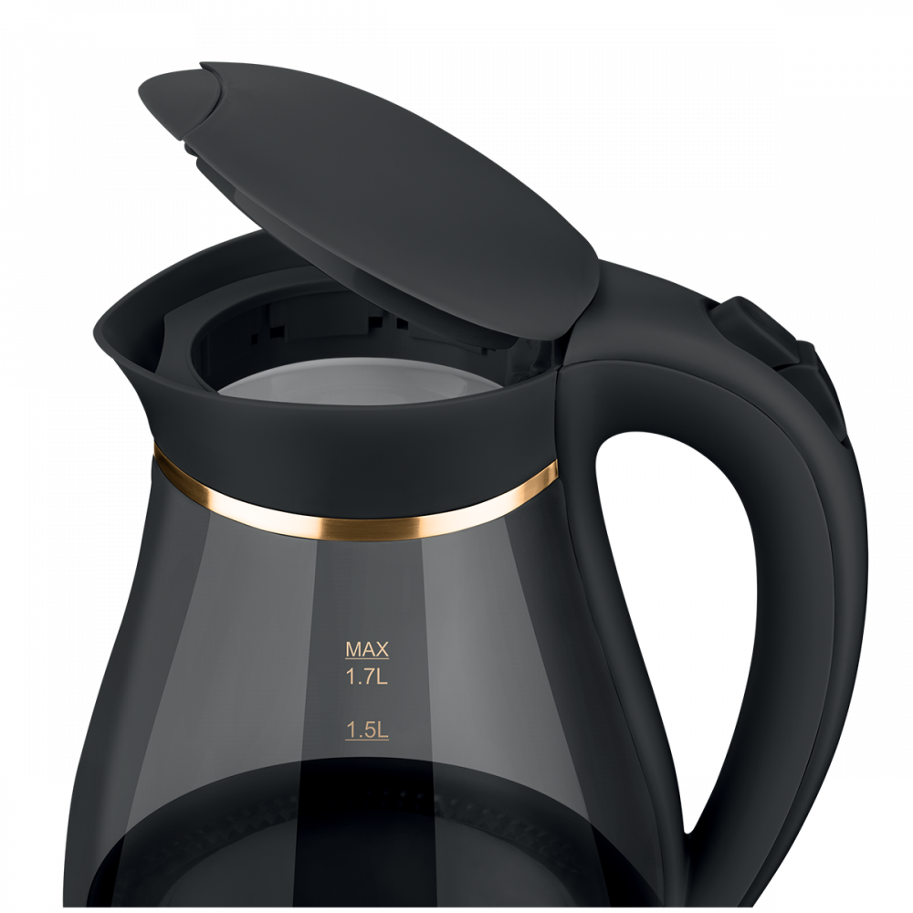 Эта модель привлекает внимание изящной формой, плавными линиями, благородным контрастом черного цвета и золота. А скрытая подсветка превращает чайник в драгоценный камень, который выглядит особенно эффектно в момент кипения воды. Это настоящее световое шоу, которым вы не устанете любоваться!