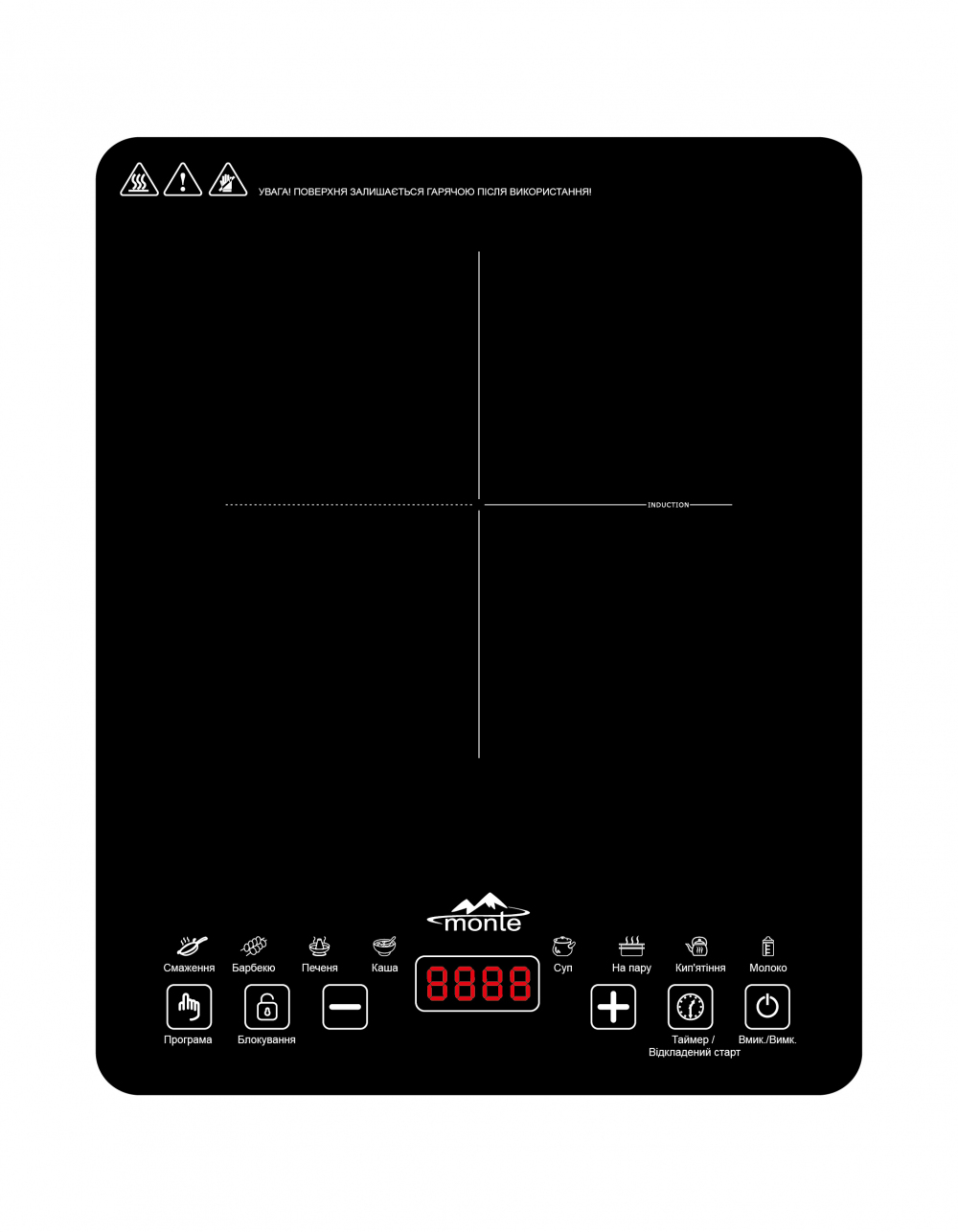 Мощность: 2200 Вт, 8 режимов, подогрев, таймер, отложенный старт, автоматическое обнаружение посуды, защита от перегрева, функция блокировки кнопок, размеры: 28х33х4,5 см
