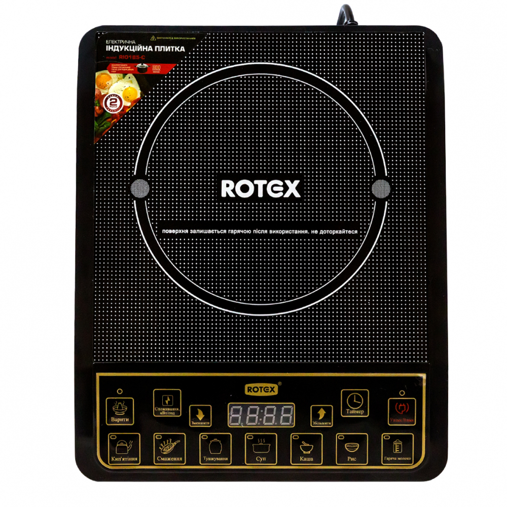 Настольная индукционная плита RIO185-C от компании ROTEX оборудована одной конфоркой мощностью 2000 Вт.