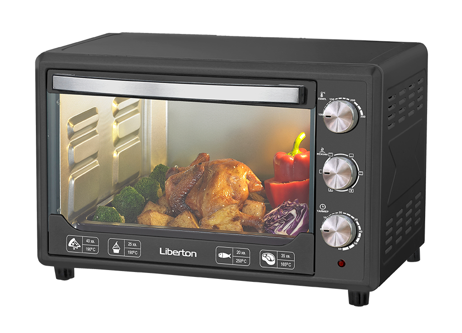 Мощность: 2000 Вт, внутренний объем 48 л, таймер со звуковым сигналом (0-60 мин.), регулятор температуры (до 250 °C), верхний и нижний нагревательный элемент, 3 режима нагрева, конвекция, внутреннее покрытие: нержавеющая сталь, подсветка, размеры: 37,7х54,9х40,8 см, вес 9.55 кг, в комплекте: решетка и противень
