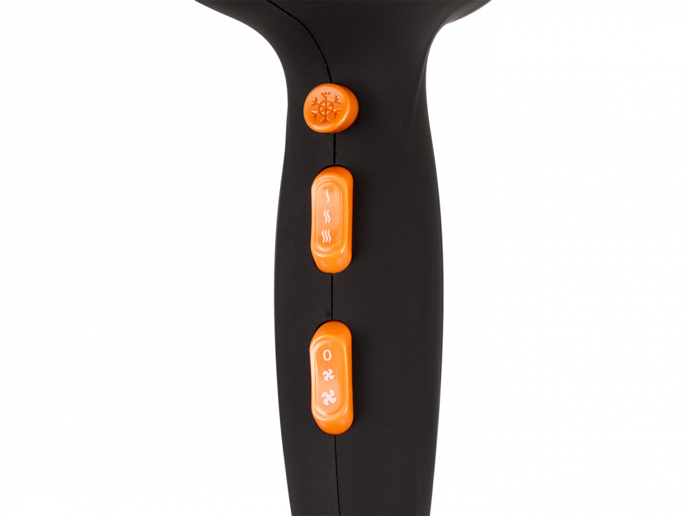 Он обеспечивает достаточную силу воздушного потока и высокую температуру для создания укладки. На внутренней части ручки установлены удобные механические переключатели для настройки режима работы устройства.