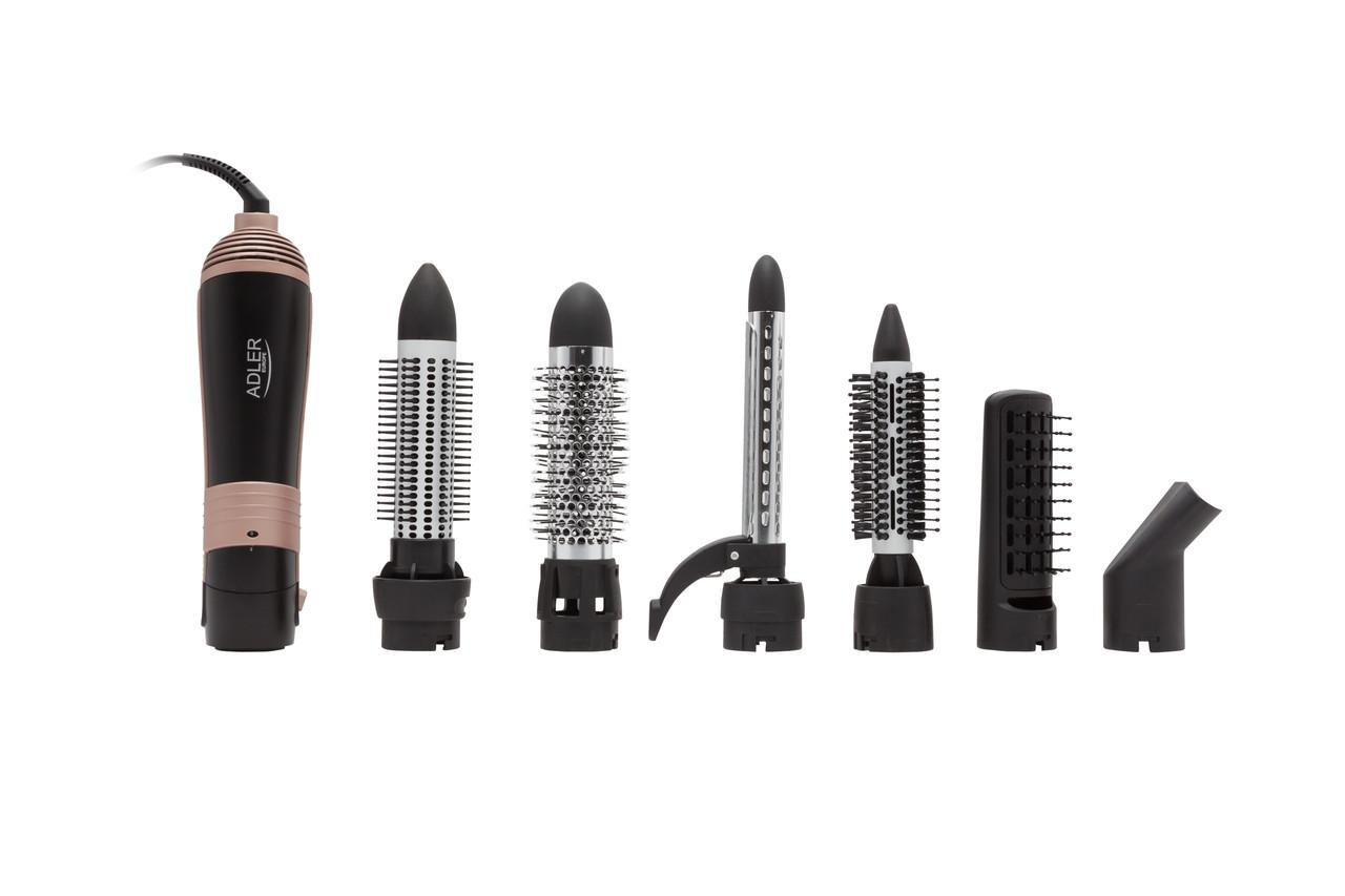 Професійний стайлер для укладання волосся 6 в 1 Adler AD 2022! З його допомогою ви зможете втілити в життя найвишуканіші зачіски. І міняти їх хоч щодня залежно від настрою. Потужність пристрою дорівнює 1200 Вт, а це означає, що волосся буде висушене за лічені хвилини! Насадки та елементи фена виготовлені з використанням кераміки, тефлону та турмаліну, а тому забезпечують потрійний захист для вашого волосся. Кераміка рівномірно прогрівається, розподіляючи теплий потік повітря на все волосся,; тефлон і турмалін запобігають пересушуванню і сплутуванню волосся, даючи змогу використовувати будь-які засоби для укладання. Дві швидкості призначені для простого сушіння і формування зачіски, три температурні режими дадуть змогу вибрати необхідні параметри. Зручний шнур прокручується на 360 градусів, забезпечуючи свободу експлуатації.