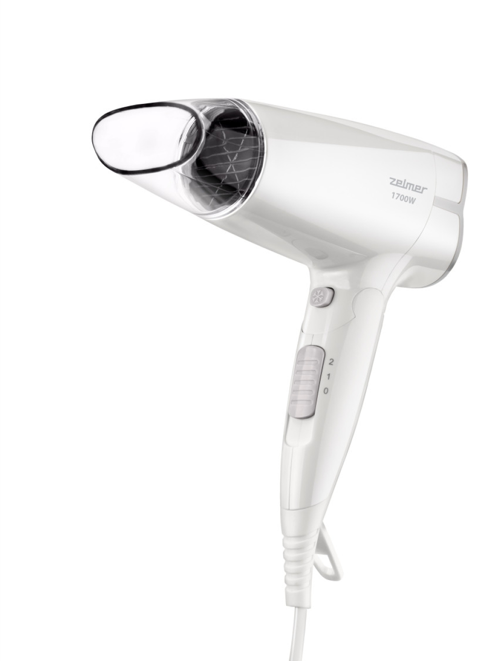 Фен Zelmer ZHD8320B потужністю 1700 Вт дозволить вам подбати про красиву зачіску навіть поза домом. Пристрій має доладну ручку, завдяки чому воно поміщається в будь-яку сумку або валізу. Кнопка холодного повітря – надзвичайно корисна функція для тих, хто хоче мати гладке та блискуче волосся. Крім того, фен має дві швидкості сушіння і два температурні режими, а це означає, що ви можете вільно налаштовувати його роботу відповідно до своїх уподобань. У комплекті є концентратор – профільований наконечник, який збільшує потік повітря та полегшує сушіння.
