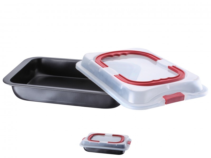 Она выполнена из углеродистой стали, которая не вступает в реакцию с продуктами, не влияет на изменение их вкуса или запаха. Антипригарное покрытие емкости предотвращает пригорание выпечки и прилипание теста к стенкам посуды.