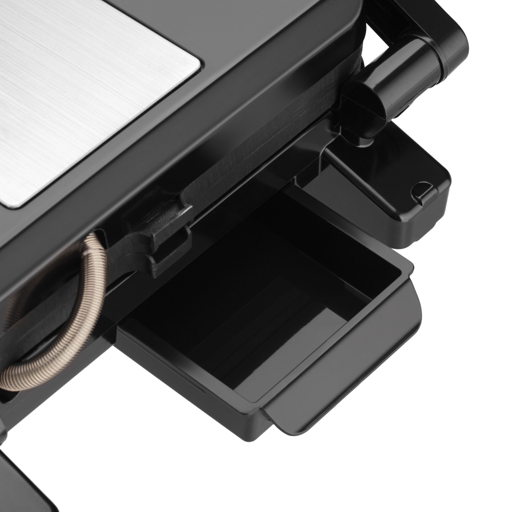 Притискний гриль з інтуїтивно зрозумілим механічним керуванням. Передбачено розкриття на 180° та регулювання температури. Пристрій оснащений рифленими керамічними протипригарними пластинами і знімним лотком для збору масла. На додаток: ергономічна рукоятка та нековзна підстава. Страви, приготовлені на грилі, вважаються кориснішими за смажені, адже під час приготування не утворюються канцерогенні речовини. У компактному та зручному грилі Ardesto можна приготувати смачні стейки з скоринкою, підсмажити ковбаски чи сосиски, овочі та гриби, підсмажити м'ясо та рибу тощо.