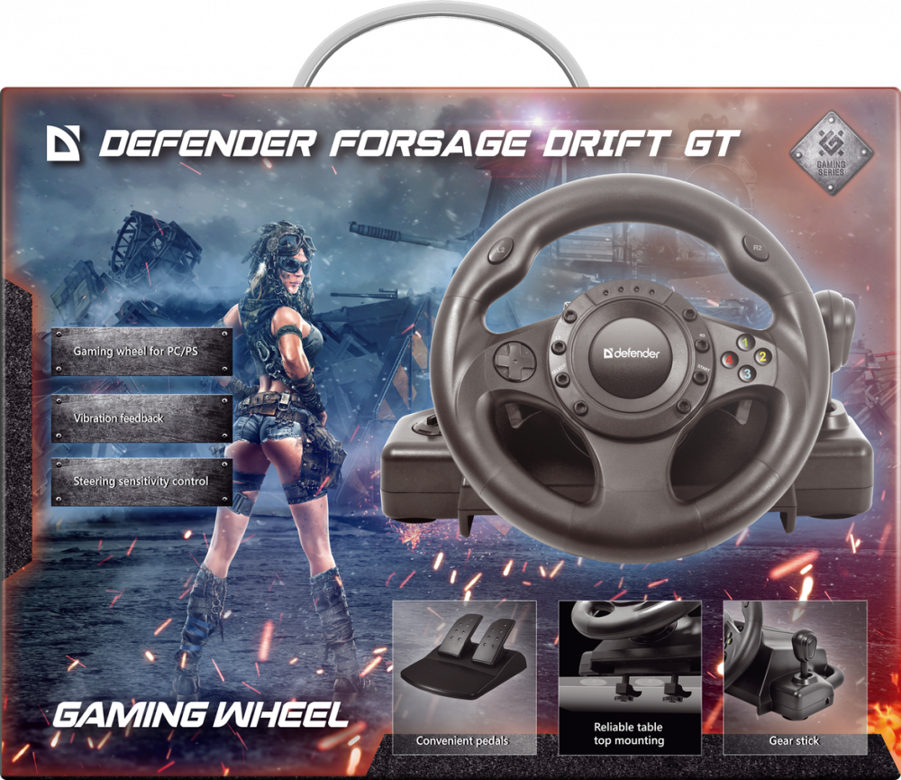 Игровой руль для ПК/PS Defender – игровой руль с возможностью ручной регулировки чувствительности.