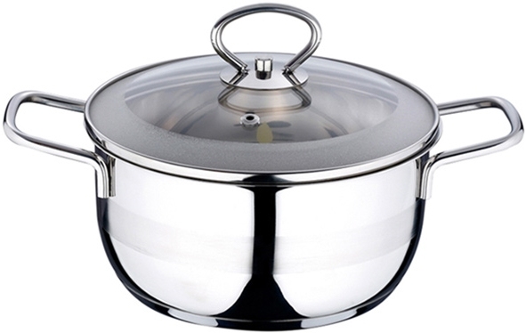 Эргономичные стальные ручки не скользят в руках. Крышка выполнена из жаропрочного стекла с отверстием для выхода пара.
