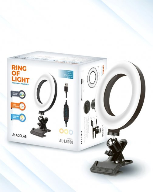 Лампа для блогера від ACCLAB AL-LR050 стане в пригоді б'юті-блогеру, ютуберу і всім, хто пов'язаний із відео- та фототворчістю. Три типи світла (холодне, нейтральне й тепле) дадуть змогу урізноманітнити ваші фото та відео. Зручне кріплення у формі прищіпки дає змогу налаштувати положення лампи у будь-якому зручному положенні. Кільцева лампа забезпечує рівномірне освітлення, за потреби можна скерувати в будь-який бік.
