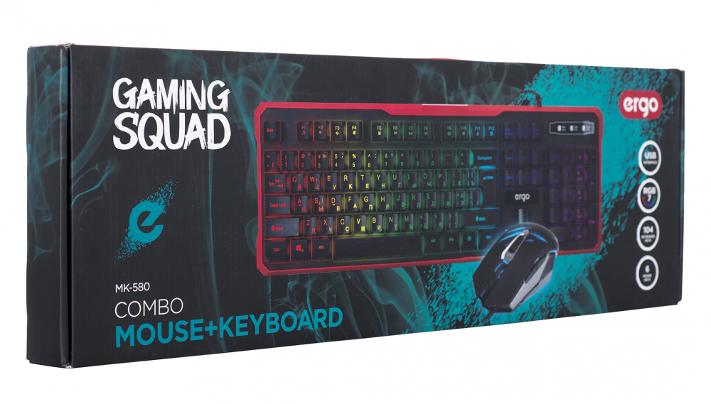 Игровой комплект клавиатура + мышь ERGO MK-580 придется по душе геймерам и тем, кто ценит комфортную работу за компьютером. Эргономичный дизайн, LED-подсветка, выносливость – эти факторы станут преимуществом в любом виртуальном бою. При этом периферия занимает минимум места на игровом столе и выглядит очень эффектно.