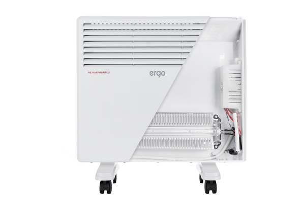 Электрические конвекторы ERGO предназначены как для основного, так и дополнительного обогрева помещений. При использовании конвекторов в качестве основного источника обогрева, прибор устанавливаются стационарно на стене при помощи кронштейнов. При использовании конвекторов для дополнительного обогрева, прибор может быть установлен на колесные платформы. И кронштейны, и колесные платформы входят в комплект поставки обогревателя. Они отличаются высоким КПД за счет применения Х-образного алюминиевого нагревательного элемента с большой площадью теплообмена и рациональной конструкции прибора, позволяющей эффективно направлять воздушный поток на нагревательный элемент.