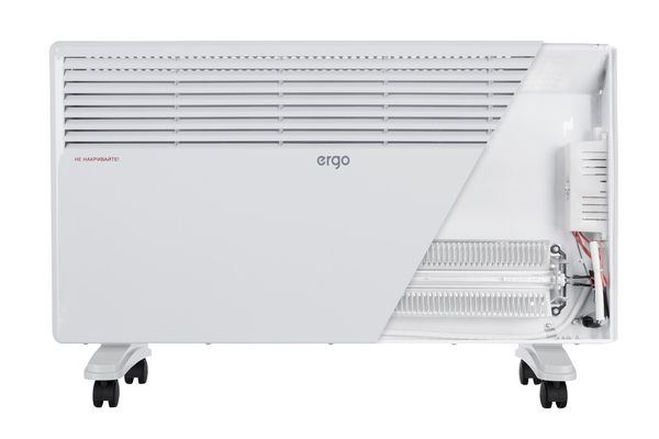 Электрические конвекторы ERGO предназначены как для основного, так и дополнительного обогрева помещений. При использовании конвекторов в качестве основного источника обогрева, прибор устанавливаются стационарно на стене при помощи кронштейнов. При использовании конвекторов для дополнительного обогрева, прибор может быть установлен на колесные платформы. И кронштейны, и колесные платформы входят в комплект поставки обогревателя. Они отличаются высоким КПД за счет применения Х-образного алюминиевого нагревательного элемента с большой площадью теплообмена и рациональной конструкции прибора, позволяющей эффективно направлять воздушный поток на нагревательный элемент.