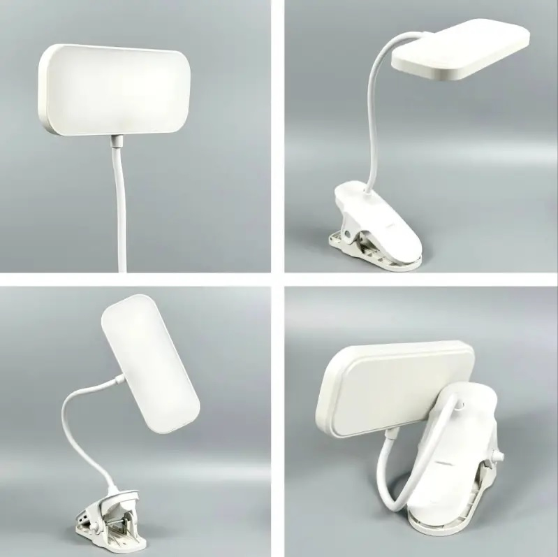 Настільна лампа, потужність 5W, плавне регулювання яскравості, 3 режими світла, живлення: акумулятор 800mAh. Тип кріплення: кліпса.
