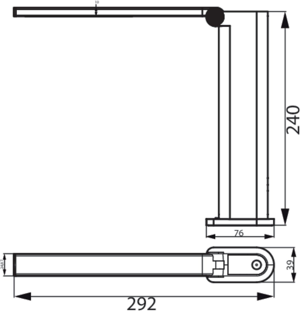Настільна лампа, сенсорне управління, потужність 5W, світловий потік 120 Лм, температура світла: 4000К, індекс кольору (CRI): 80, живлення: акумулятор, мережа 220В, розміри: 245х39х292.