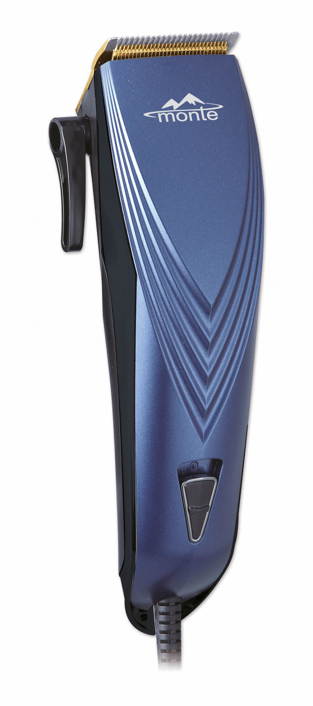 Питание от сети, лезвия с титановым покрытием, мощность: 15 Вт, 4 насадки: 3 мм, 6 мм, 9 мм, 12 мм, ножницы, расческа, щеточка для чистки, масло