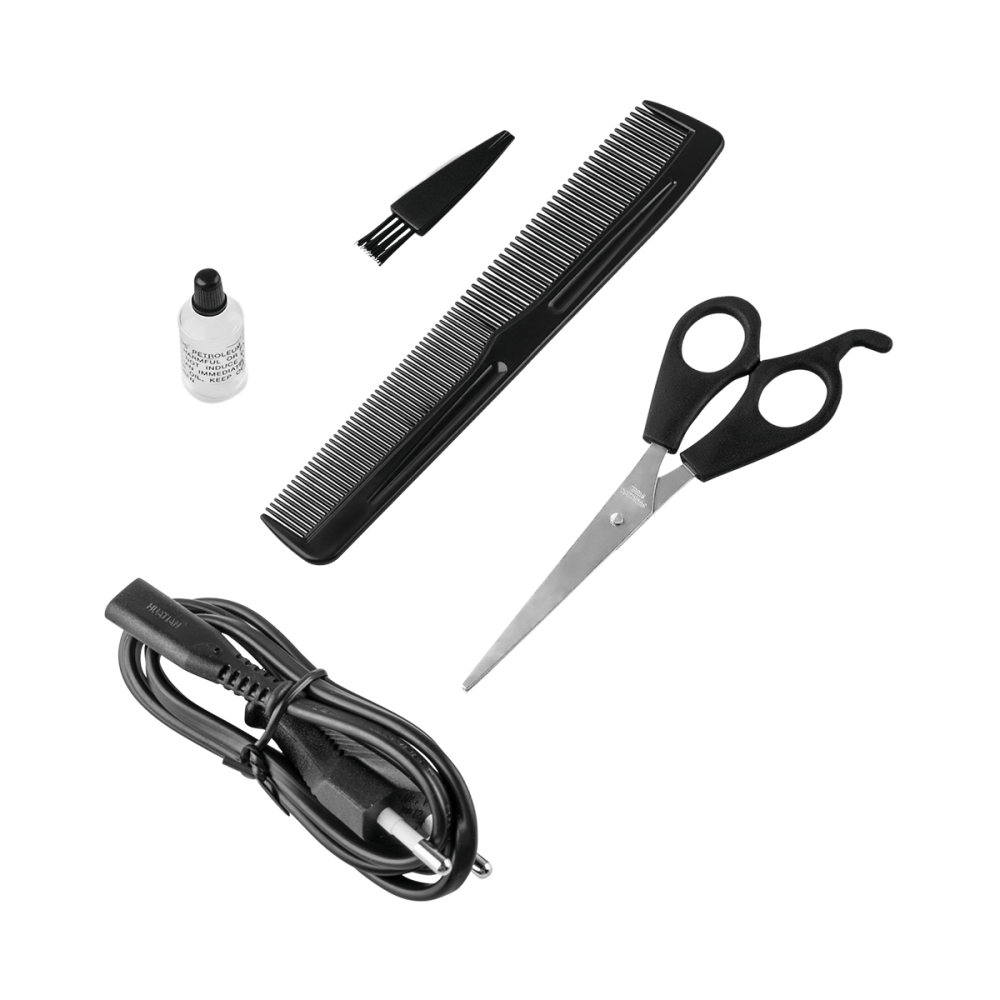Тип: 2 в 1 - стрижка волос и бороды, 7 вариантов длины стрижки от 1 до 17 мм, материал лезвия: нержавеющая сталь, мощность: 3 Вт, аккумулятор (600 mAh), время работы: 50 мин, возможность влажной чистки, парикмахерский гребень, щетка для чистки машинки, масло