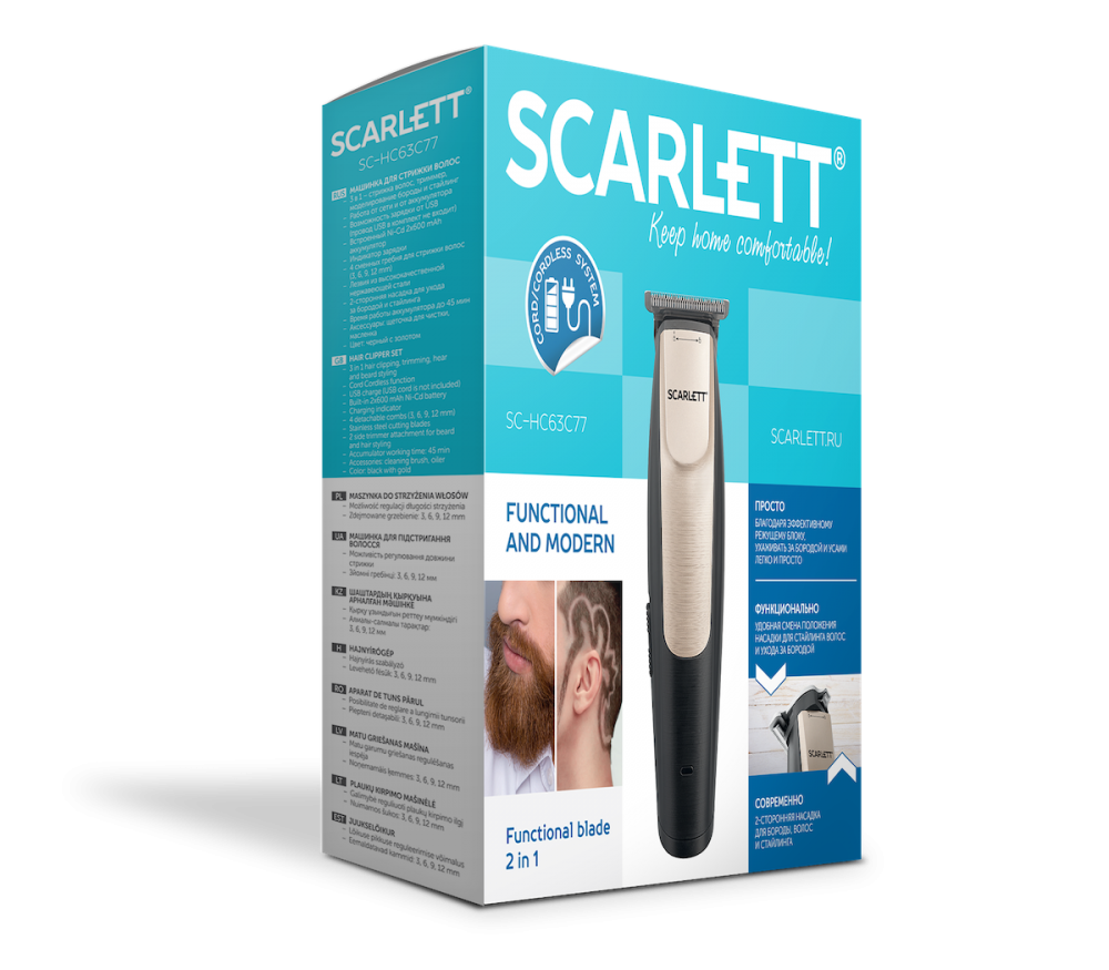 Стильная и многофункциональная машинка триммер для волос SC-HC63C77 это прибор 3 в 1 – стрижка волос, триммер, моделирование бороды и стайлинг.