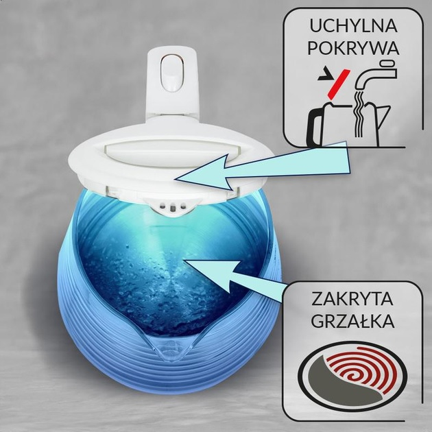 Потужність, яка дивує! Чайник MCZ-124 з вражаючою потужністю 2200 Вт швидко закип'ятить воду. Завдяки стійкій поворотній основі, що обертається на 360º, чайник ідеально вирівнюється з поверхнею, а його розміщення є простим і зручним. Він чудово підходить як для правші, так і для лівші.