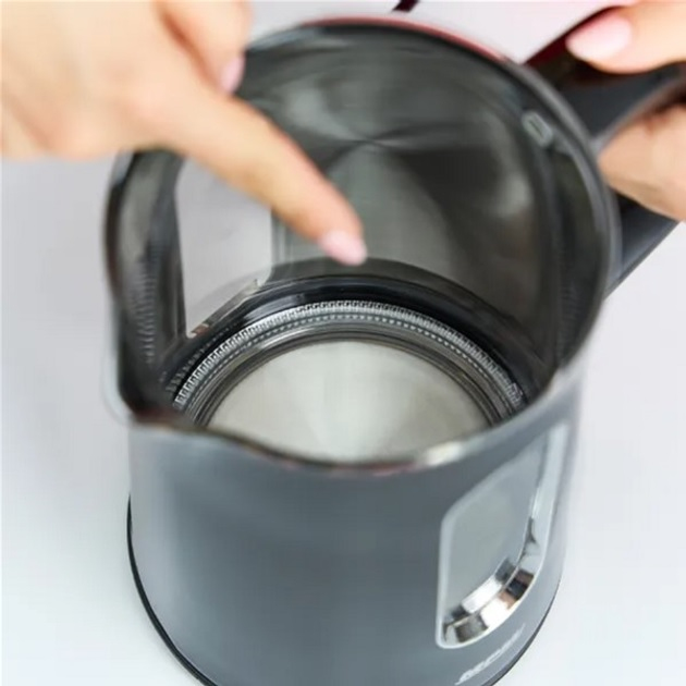 Потужність: 2200 Вт, матеріал корпусу: внутрішня колба - скло, ззовні - пластик, пластик, об'єм 1.5 л, індикатор рівня води з шкалою, підсвітка всередині чайника.