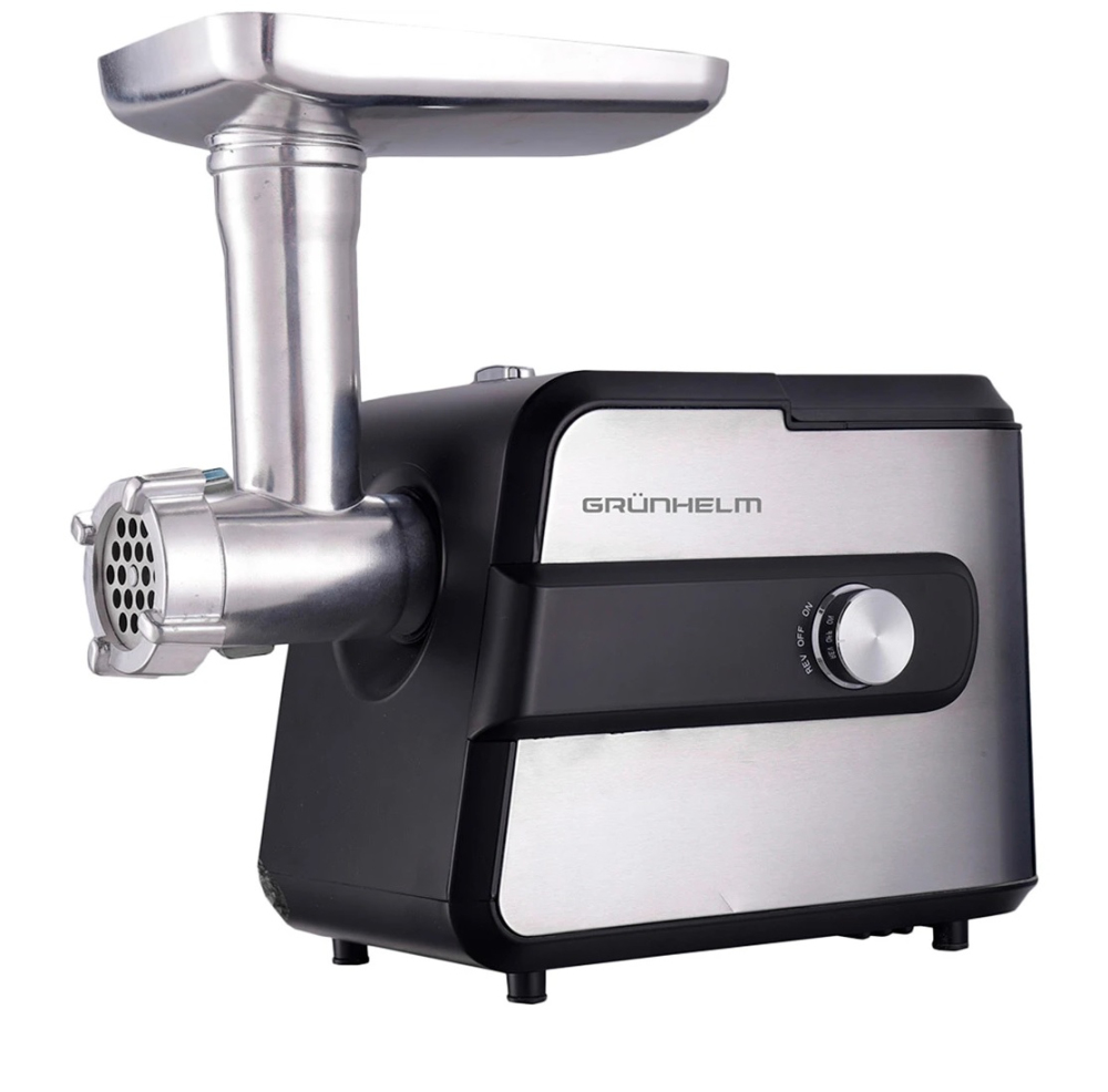 М'ясорубка AMG200SS Grunhelm легко і швидко перемелює будь-яке, навіть тверде м'ясо, наріже або натере овочі, приготує сосиски та багато іншого.