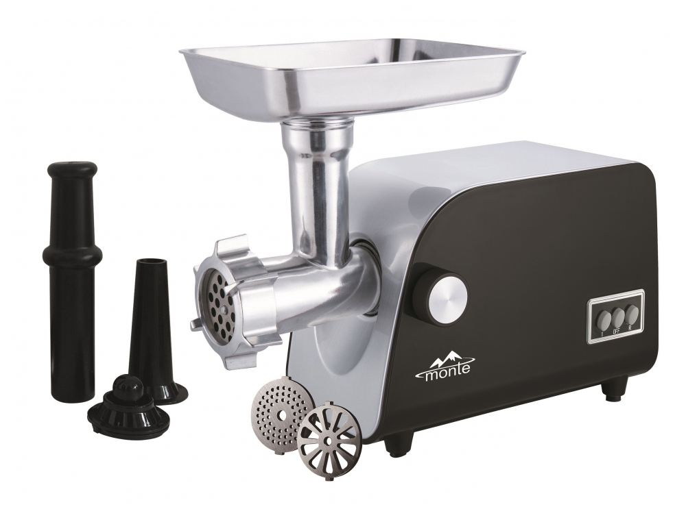Корпус устройства изготовлен из высококачественного пластика в черно-сером цвете, что очень удобно, так как такие цвета подходят к большинству интерьеров кухонь. Мясорубка Monte МТ-3110 - легкая в транспортировке, благодаря своим компактным размерам и пластиковому корпусу.