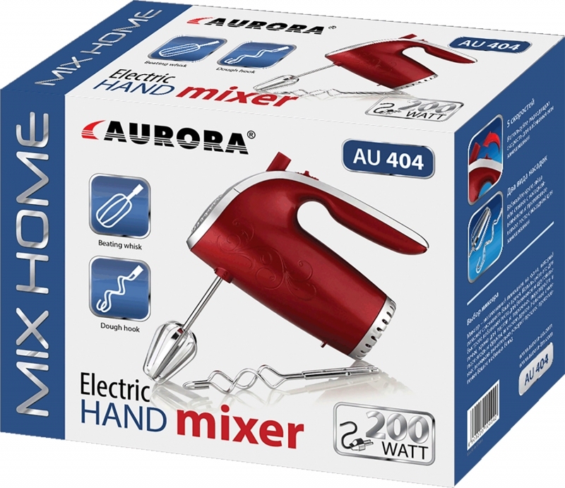 Миксер Aurora AU-404, мощность 200 Вт, венчики для взбивания, насадки для теста
