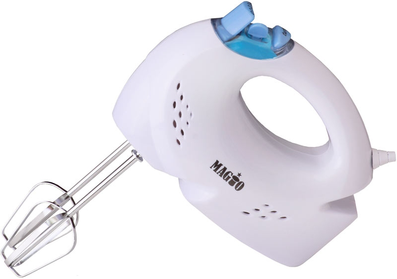 Мощность 200 Вт, 5 скоростей, функция "Турбо", насадки для взбивания яиц и теста.