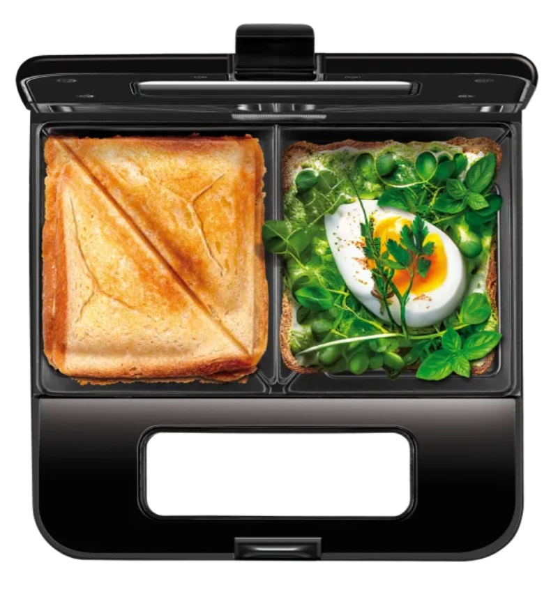 Мрієте про ідеально пропечені бутерброди з хрусткою скоринкою, наповнені улюбленими смаками? Відкрийте для себе сендвічницю MOP-48M , в якій ви можете приготувати чотири трикутних сендвіча одночасно і насолодитися смаком улюбленої випічки абсолютно по-новому. Ви можете приготувати смачні бутерброди як солодкі, так і солоні. З MOP-48M ваші бутерброди завжди будуть рівномірно підсмаженими, а їхня внутрішня частина належним чином прогріта. Ідеальну випічку гарантують: потужність тостера : 750 Вт і термостат , який автоматично регулює температуру в пристрої. У тостері ви приготуєте дві великі випічки, з яких ви отримаєте чотири трикутні сендвічі . Просто помістіть хліб у тостер і вже через кілька хвилин ви насолоджуватиметеся улюбленими смаками.
