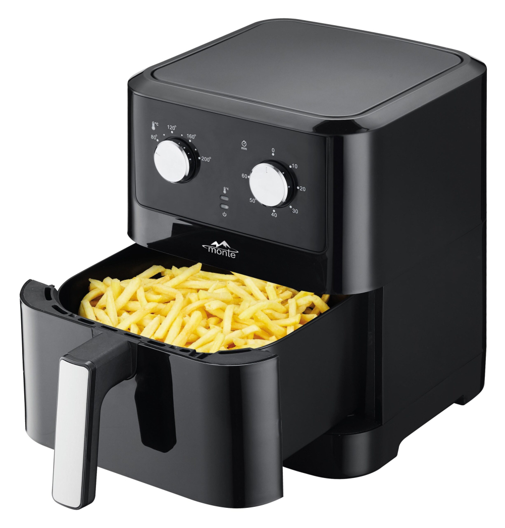Monte МТ-2701 – це універсальний і потужний прилад, що поєднує в собі функції фритюрниці, духовки та гриля, дозволяючи вам легко готувати смачні та корисні страви з мінімальною кількістю жиру. Завдяки сучасним технологіям, ви зможете насолоджуватися хрусткими стравами без шкоди для здоров’я.